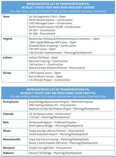 Thirty-three states and Puerto Rico have legislation allowing P3s for highway and bridge projects, according to the National Council of State Legislatures.