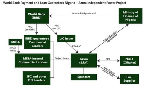 An example of natural convergence for World Bank support is the Azura power project in Nigeria, where IFC loans, MIGA political risk insurance and World Bank guarantees were all deployed together, as depicted in the preceding diagram.