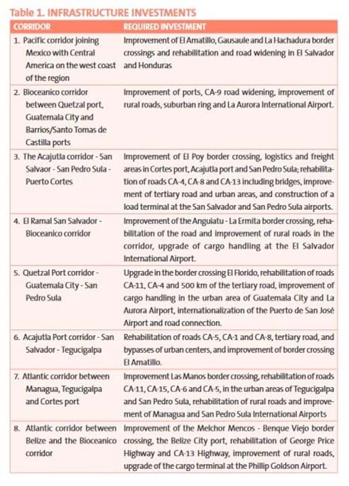On the infrastructure side, the Alliance for Prosperity is focused on eight logistics corridors based on their potential to facilitate trade and economic activity among the countries. Table 1 shows the eight projects.
